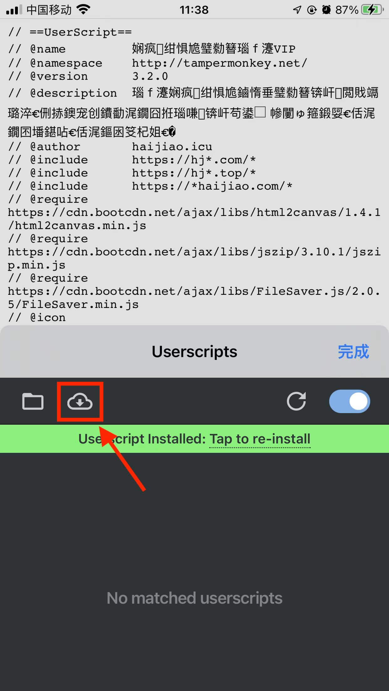 如果需要更新脚本, 可以点击【userscripts】扩展中的小云朵进行更新。