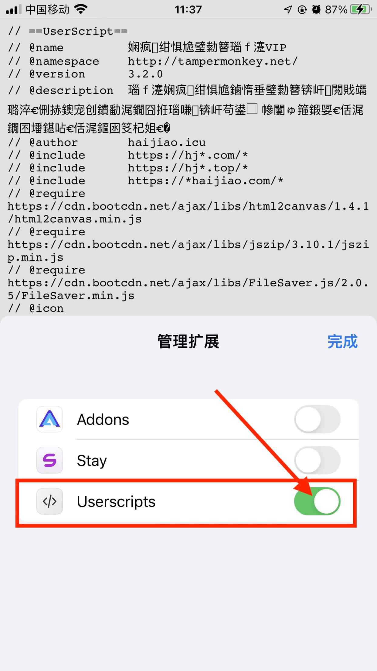 经测试,目前苹果端支持【Safari浏览器+UserScripts扩展】、【Via浏览器】、【Focus浏览器】,下面分别为三种环境的安装教程。