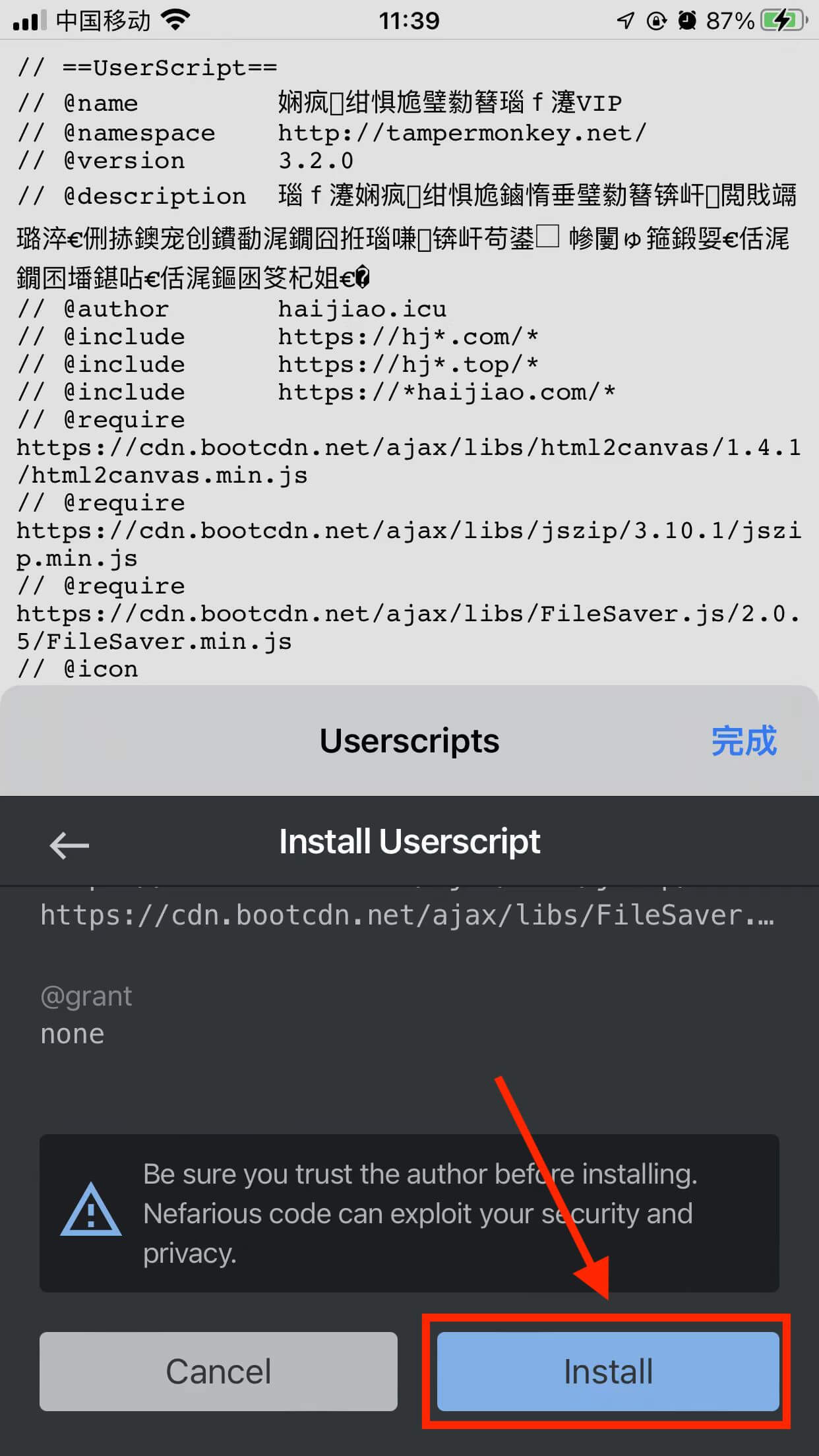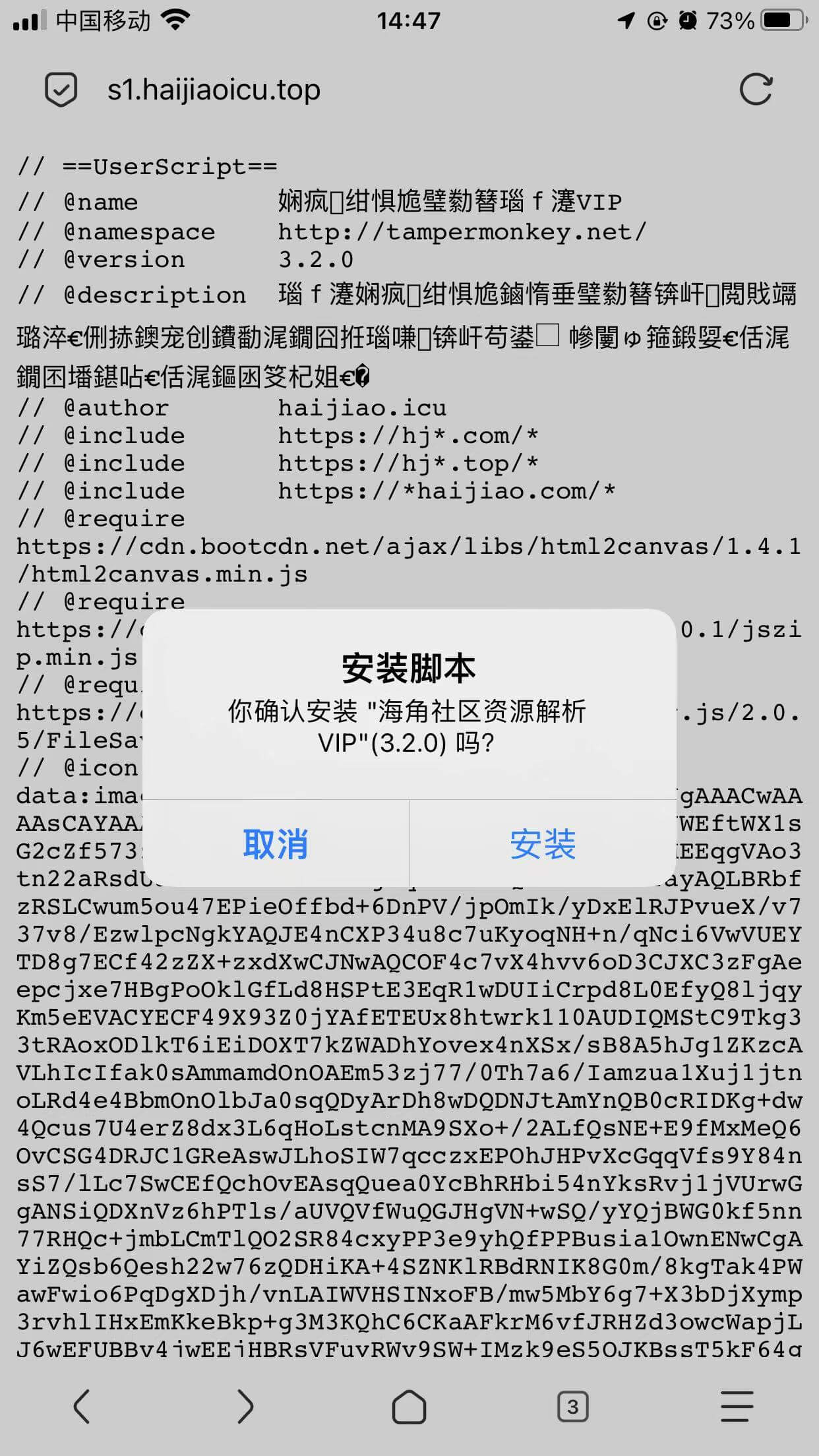 2.打开脚本链接后, 在弹出的窗口中点击【安装】即可。